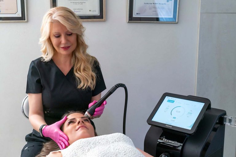 Treating the face with DermaClear achieves pore cleansing, blackhead removal, elimination of dead skin cells, hydration, and detoxification with special cocktails. This is followed by facial rejuvenation and lifting, promoting better facial volume and a fresher, healthier facial skin.